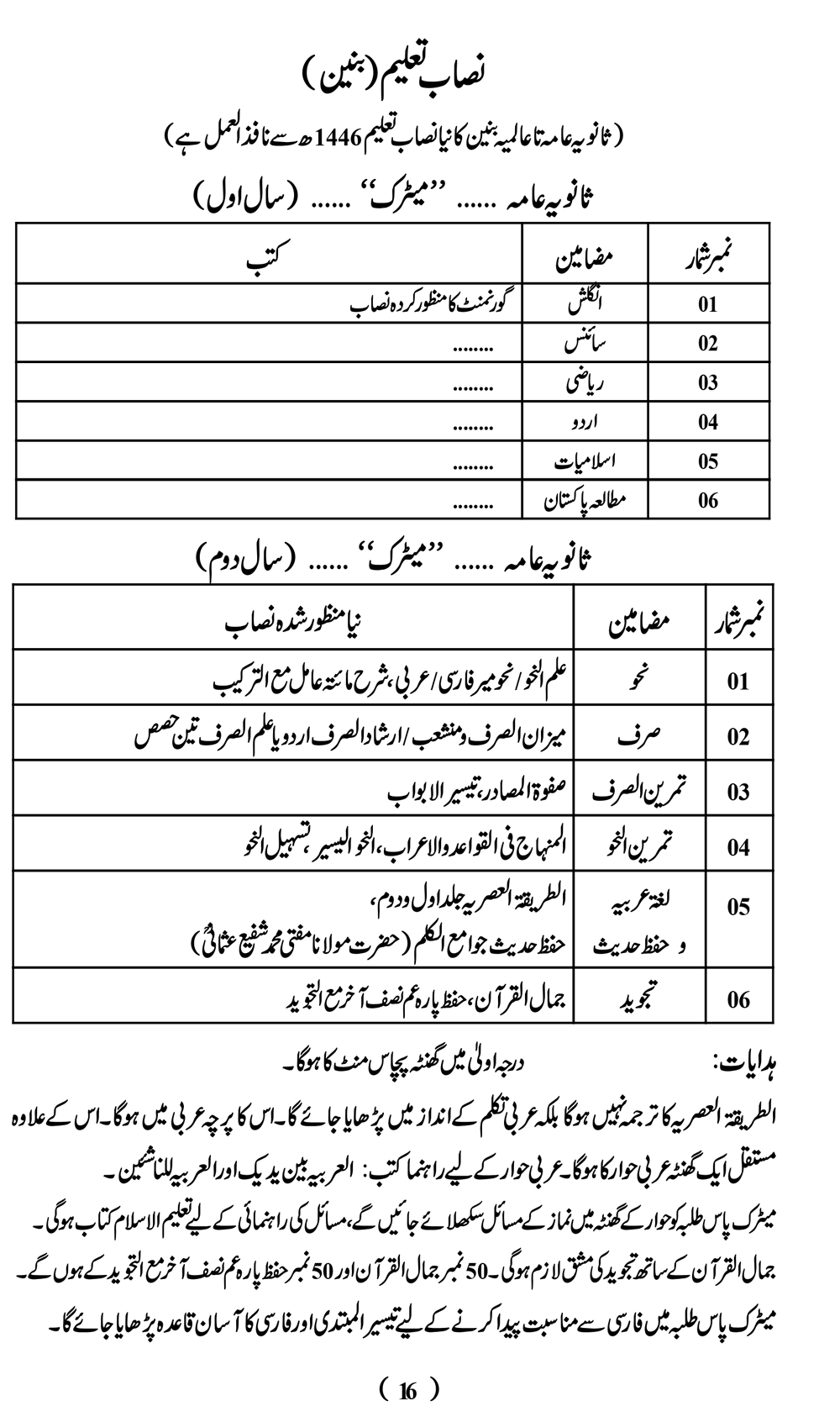عامہ، خاصہ کی بنیاد پر میٹرک اور ایف۔اے کے لازمی مضامین کے امتحان کی اجازت۔