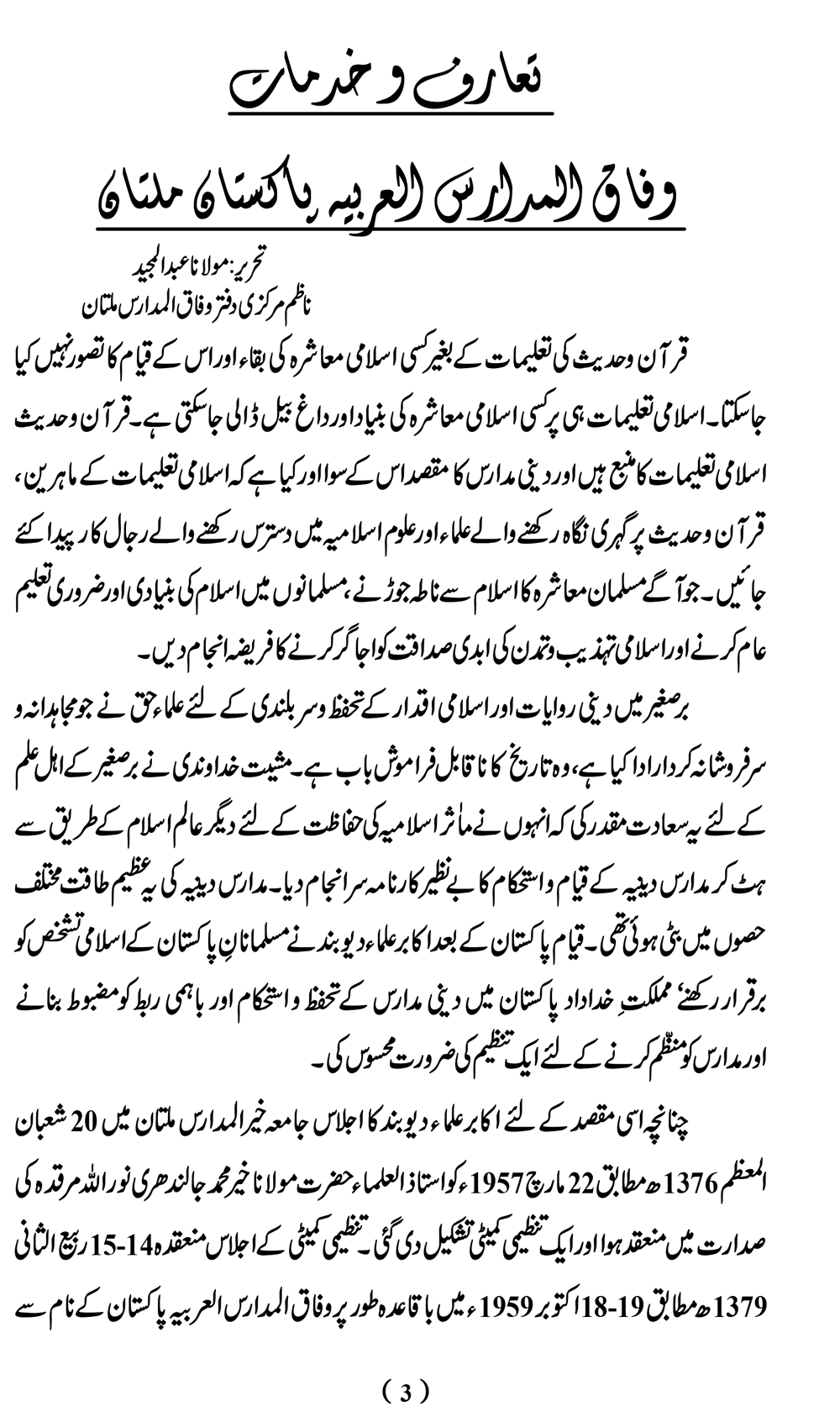 وفاق المدارس کی سرکاری رجسٹریشن۔