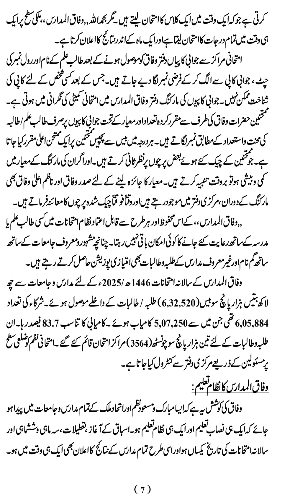 وفاق المدارس کی رجسٹریشن اور تسلیم شدہ اسناد کے خطوط۔