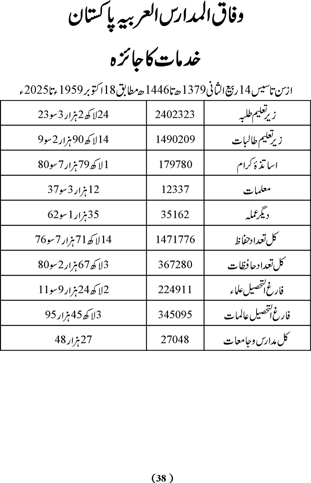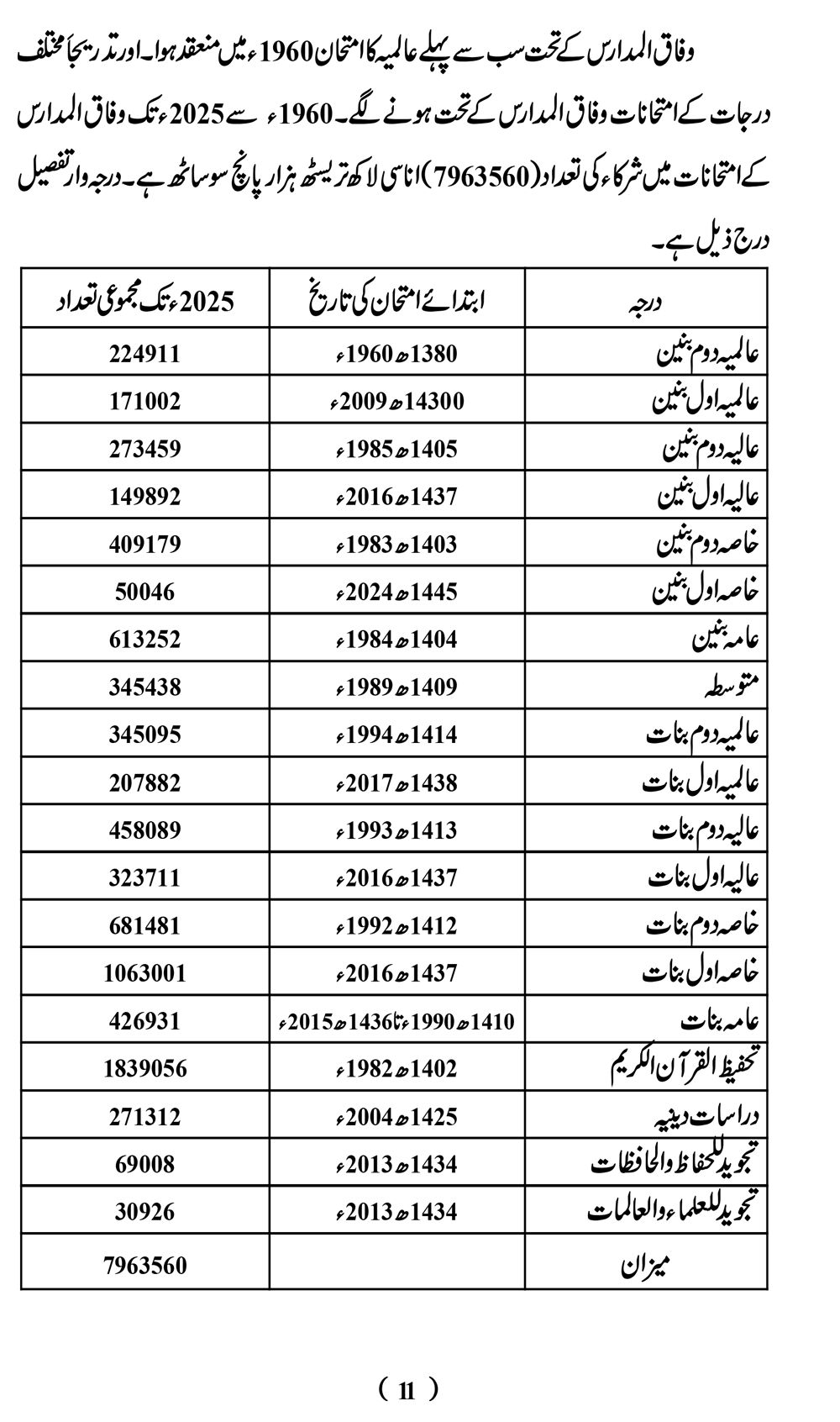 تعداد داخلہ مدارس/جامعات
