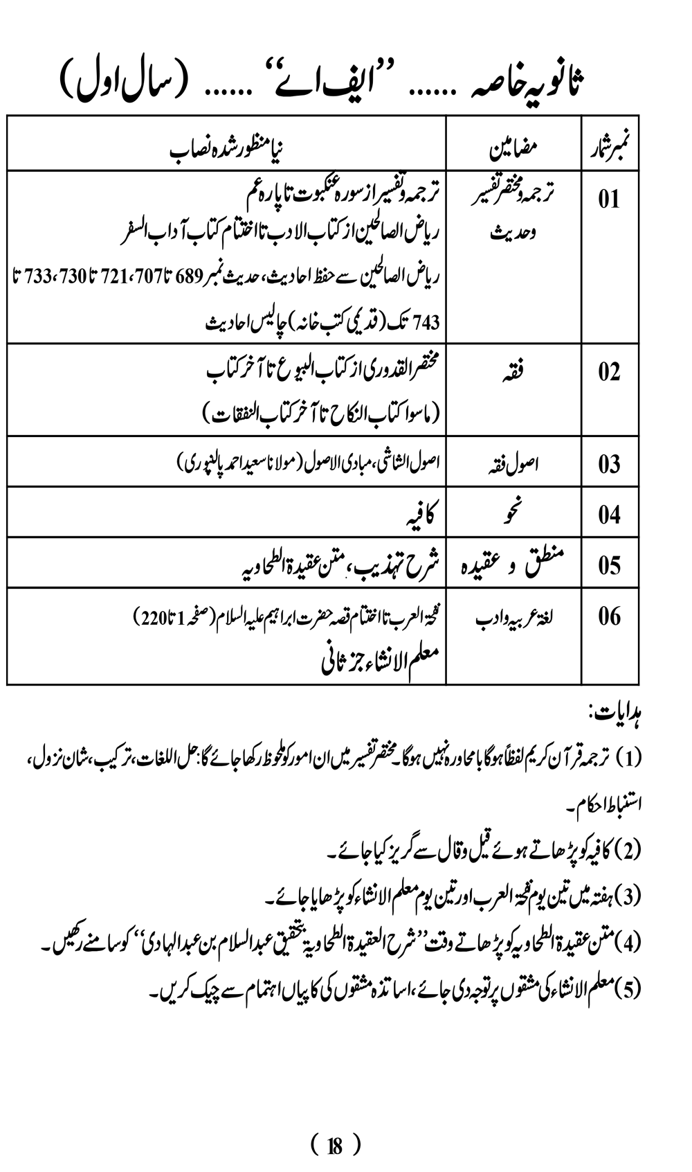 نصاب تعلیم درجہ متوسطہ