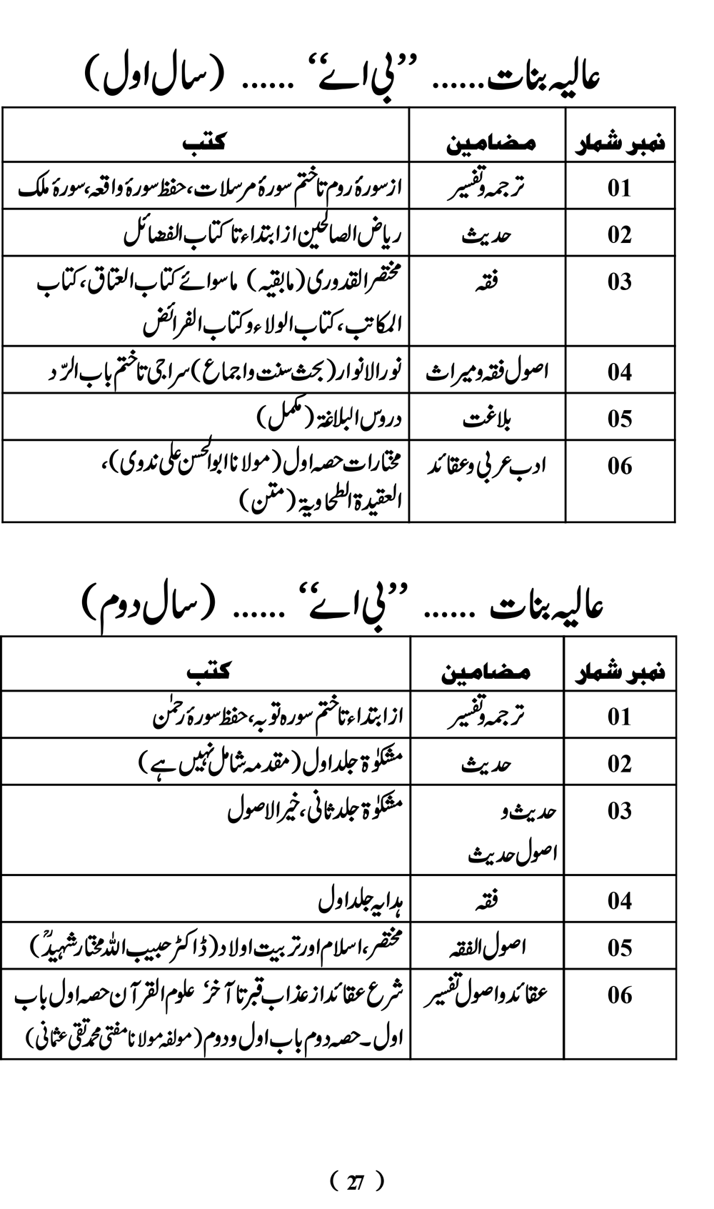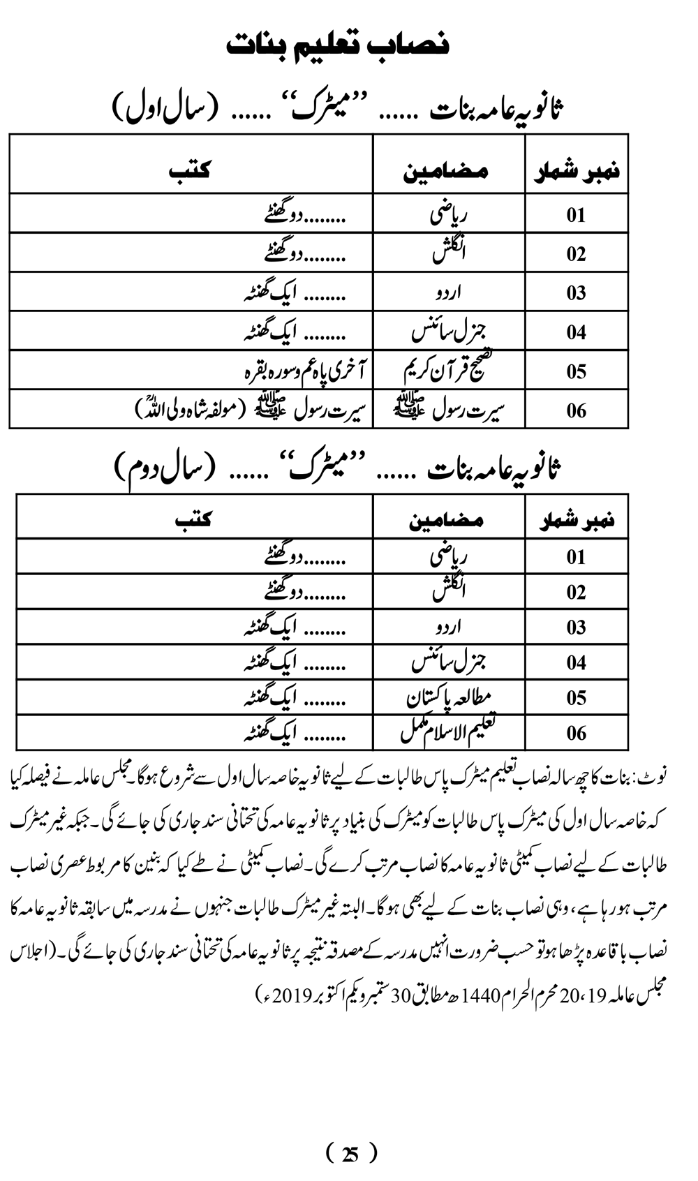 نصاب تعلیم بنات