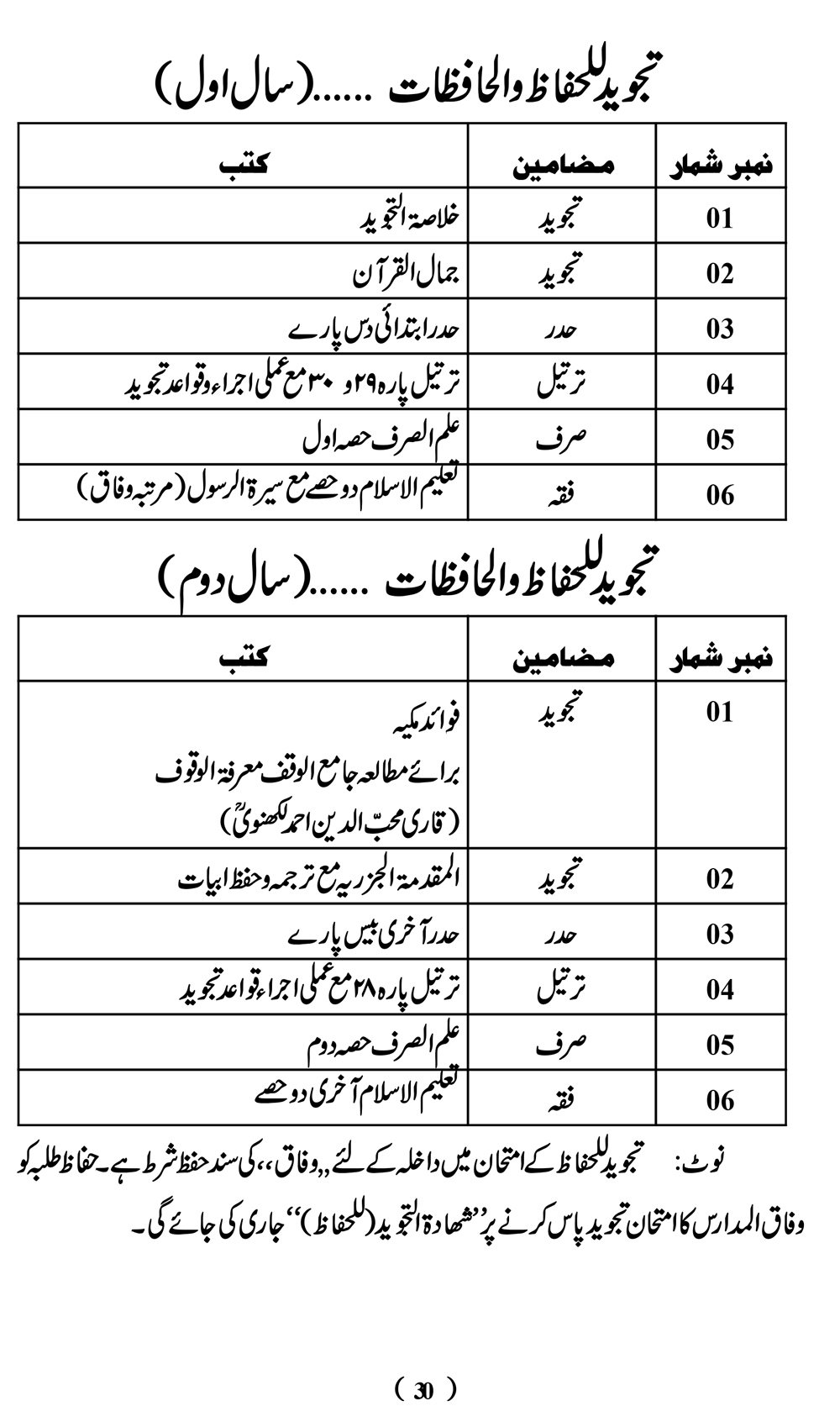 نصاب تعلیم دراسات و تجوید