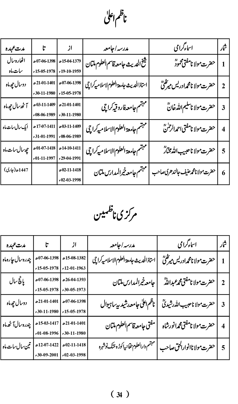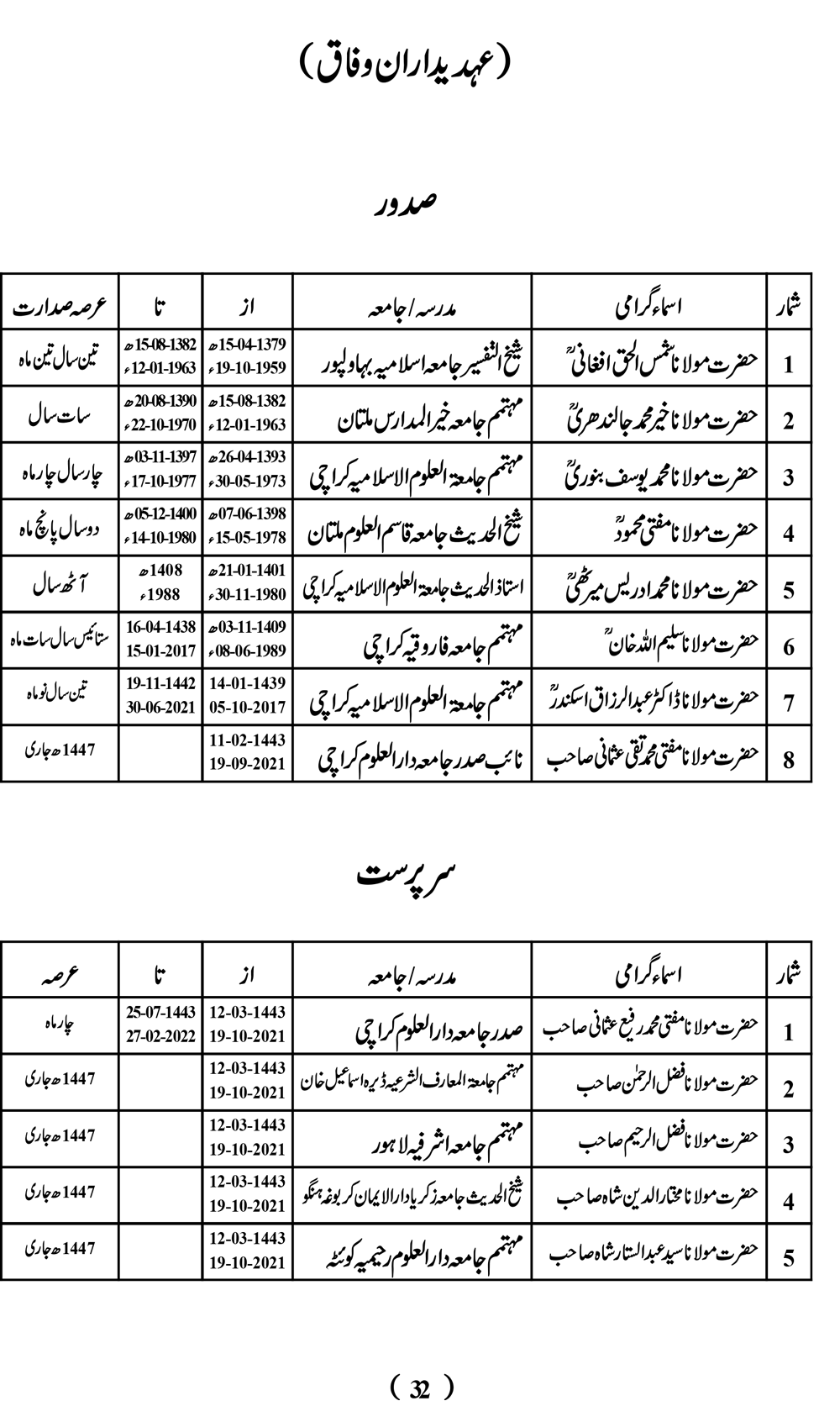 عہدیدارانٕ وفاق