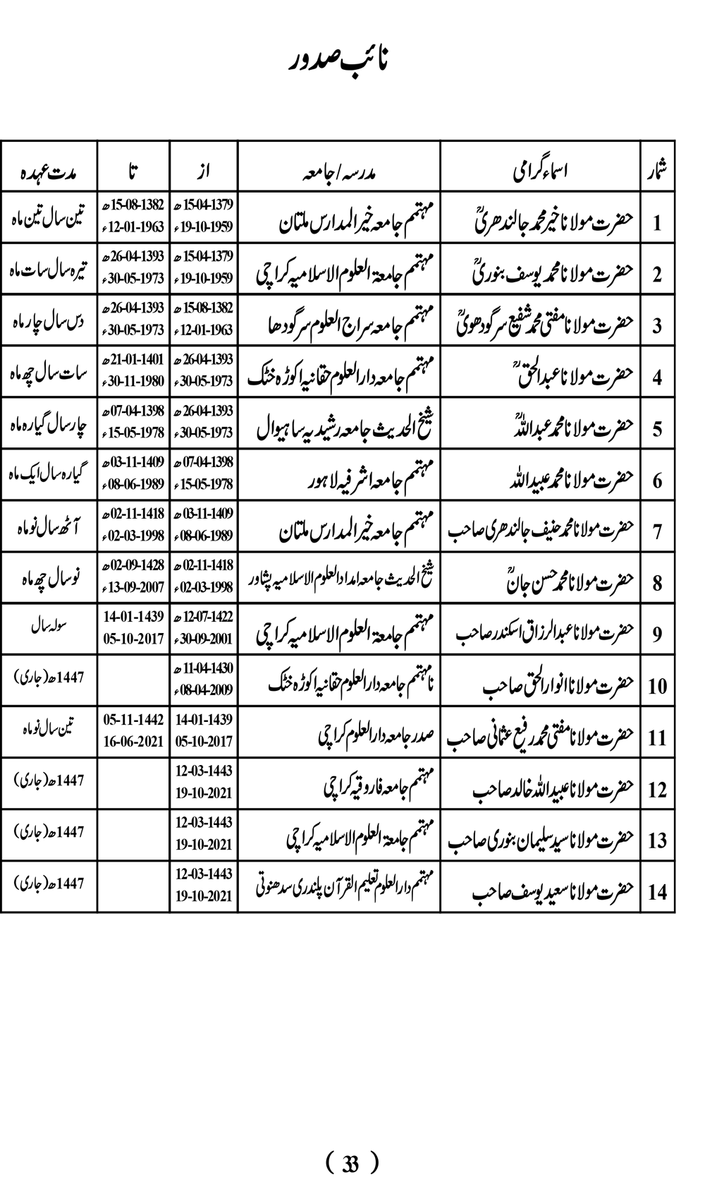 الحاق شدہ دینی مدارس کی فہرست